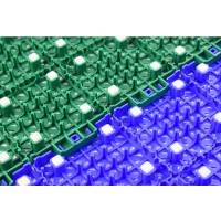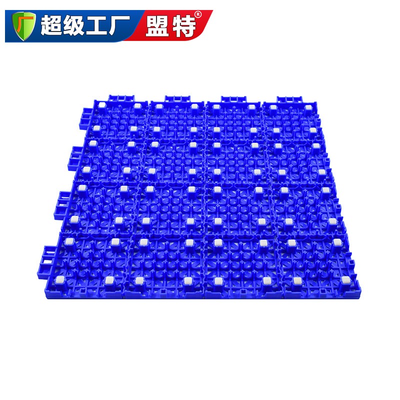 由16小塊地板,采用波紋軟連接,采用全新改性聚丙烯分子材料,具有環保、安全、舒適等新特性。
