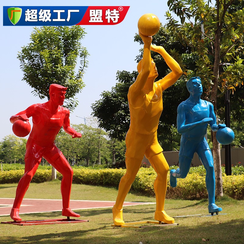 這款戶外運動人打球擺件是一個真實大小的立體雕塑,展現了一個打著籃球或足球的運動員的動態形態。整個雕塑采用玻璃鋼材料制成,使得它在戶外環境中可以抵御陽光、雨水、風沙等自然因素的侵蝕,并且不會褪色或變形。這種特殊的材料使得雕塑具有出色的耐候性和耐腐蝕性,可以在不同的氣候條件下長時間保持良好的外觀。