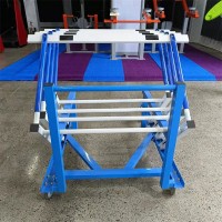 跨欄架推車采用高強度材料制成,具備穩定的結構,能夠承受跨欄架的重量和運輸壓力。