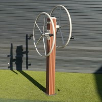1. 設計:塑木雙人大轉輪一般采用簡約而堅固的設計,結構穩定,承受力均勻。兩個轉輪上設有扶手,使用者可握住扶手進行身體的旋轉運動。