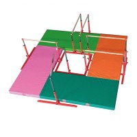 體育器材體操組合包括器械體操器械和藝術體操器械。常見的器械包括單杠、雙杠、吊環、鞍馬、蹦床、平衡木等,而藝術體操器械則包括綢、球、環、棒等。