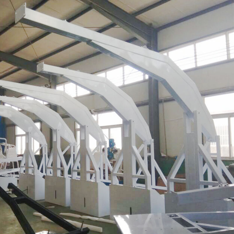 籃球架底座為80x120X8mm、80x120X3mm矩管和δ10mm鋼板焊接而成,前、后立臂均為80x120X3mm矩管焊接而成,伸臂為150x150X4mm矩管和80x120X2.5mm矩管和δ3mm鋼板焊接而成。上拉桿為φ48X3mm焊管,鎖桿為φ60X6mm無縫管,焊縫表面均勻光滑,籃板耳子為精密鋁合金材質,采用壓鑄工藝,外形美觀,性能可靠。