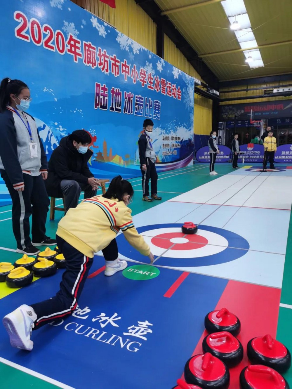 全國陸地冰壺賽由國家體育總局冬季運(yùn)動(dòng)管理中心主辦,其賽道場地長20.5米,寬3.6米,大本營直徑2.4米(標(biāo)準(zhǔn)冰壺場地長44.5米、寬4.32米,大本營直徑3.66米)。大眾陸地冰壺標(biāo)準(zhǔn)中,陸地冰壺比賽場地長44.5米,寬5米,由6色彩帶分為內(nèi)外兩道。場地兩端中心線與一條3米長的中線平行,線內(nèi)緣是發(fā)球區(qū)。